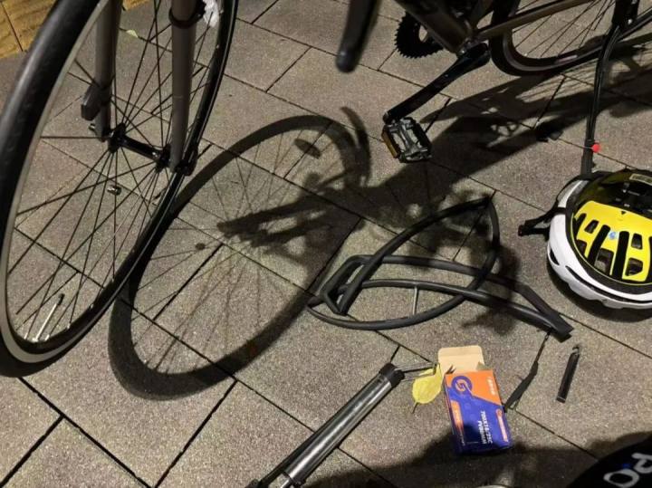 “我们都带了备胎,在路边找个平整的地方,20多分钟就换好了。”小宋说前后他一共爆胎5次,小陈爆胎3次。到后面备胎用完了,又去自行车店买了几条,“老板看我买得多,还给我打折了,35元一条。”