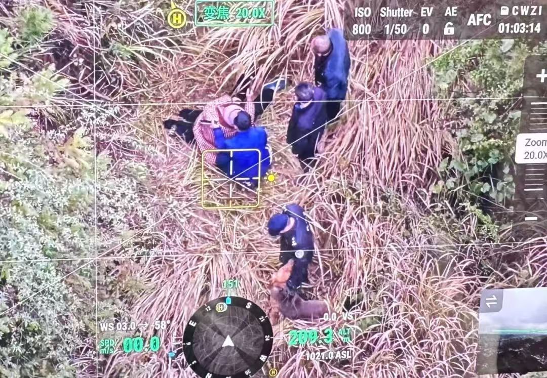 接警后,民警争分夺秒开展找寻工作,通过视频巡查及走访调查,锁定老人最后出现地点后,立即通过“贵警110”发起协同,各支撑警种通过人、机(无人机)、犬开展拉网式搜寻。终于,无人机在山顶的一个草堆里发现了老人,地面警力迅速前往救援。