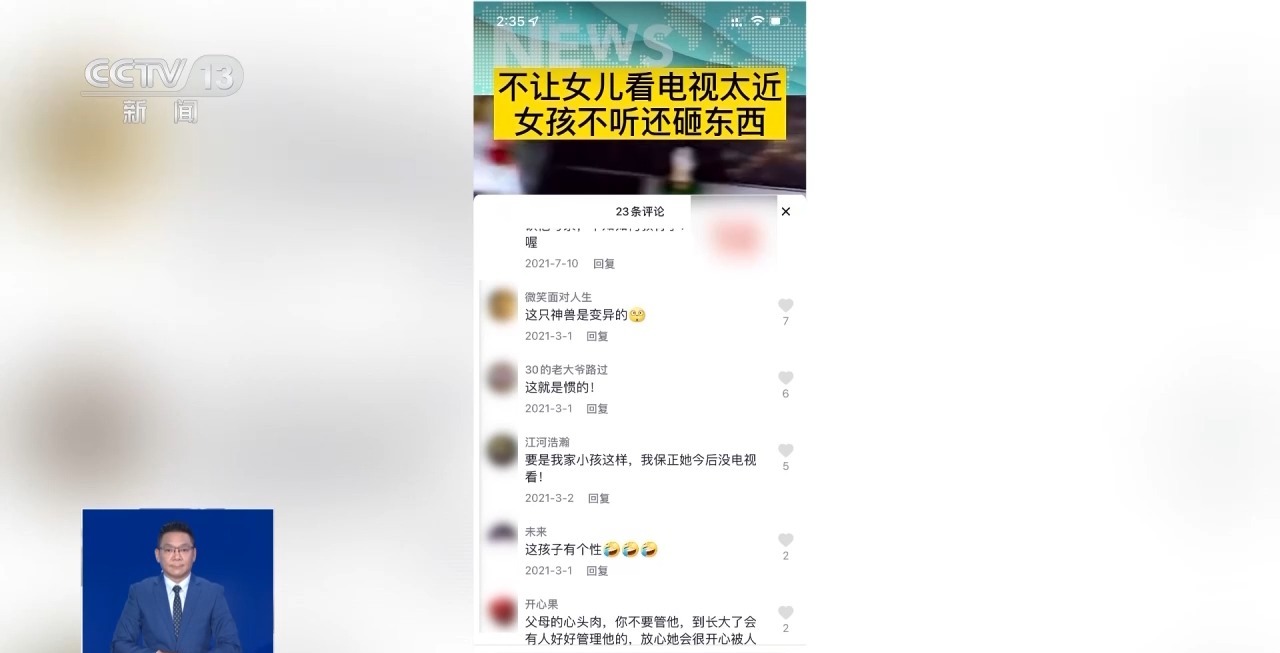 这则记录女童在家中发火摔打物品的短视频经转发配文,短短两天内就迅速在某短视频平台上获得了超过30万的点赞量。