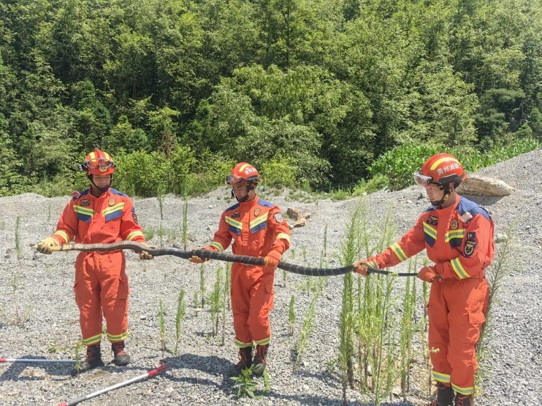 近日,黔西南州消防救援人员出警到达现场后,这户人家的村民却说:“这条蛇有房子那么长,你们这袋子装不装得下哦”?