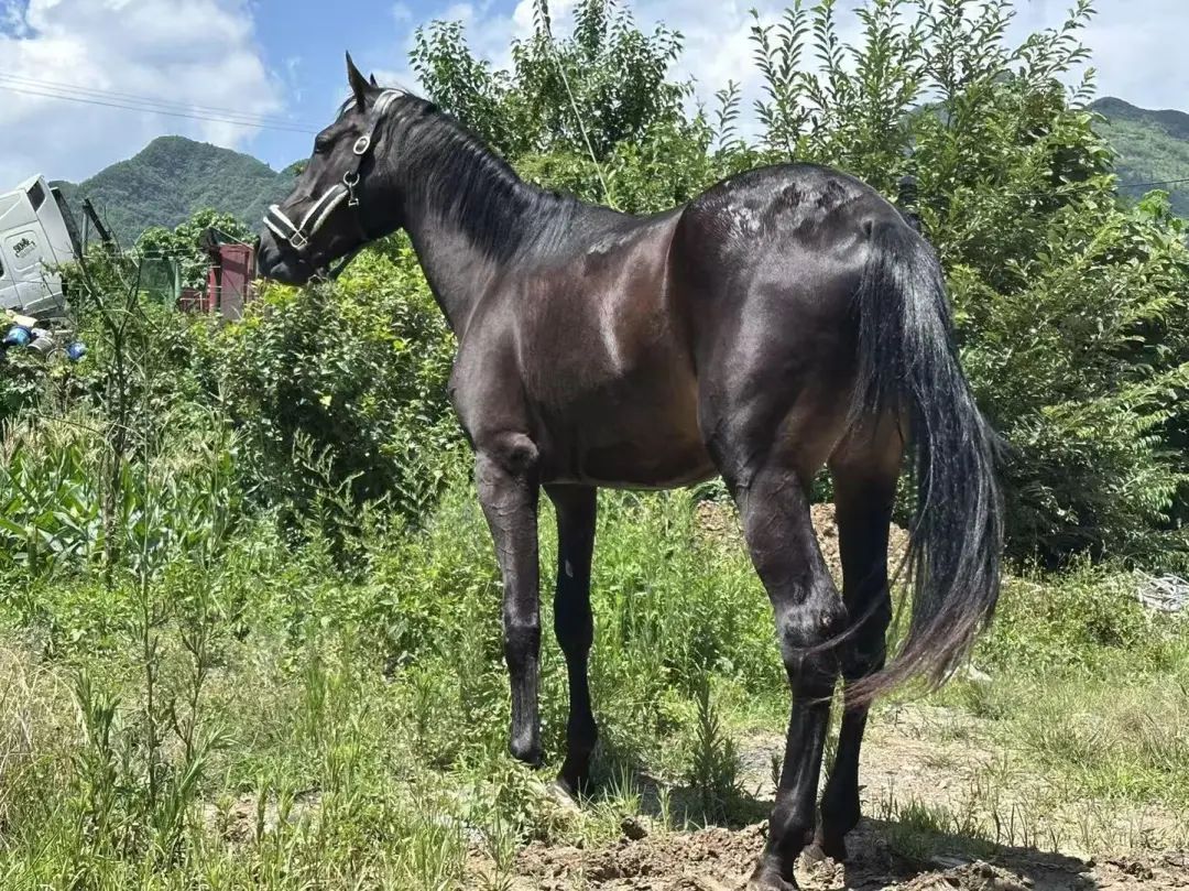 据申先生介绍,这是一匹纯进口的汗血马,这匹马的爷爷在国外是拿过四次冠军的,其父母也是名马。他于2023年10月在一场拍卖会上以9万元把它拍回来,它今年两岁多,当时这匹马是被运去湖南株洲一俱乐部进行培训。