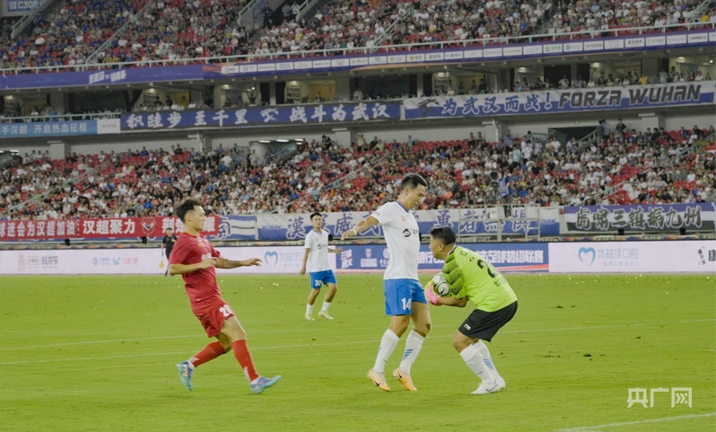 上半场,双方互有攻守,场面胶着,武汉经开区队率先破门,拿下“汉超”首球。