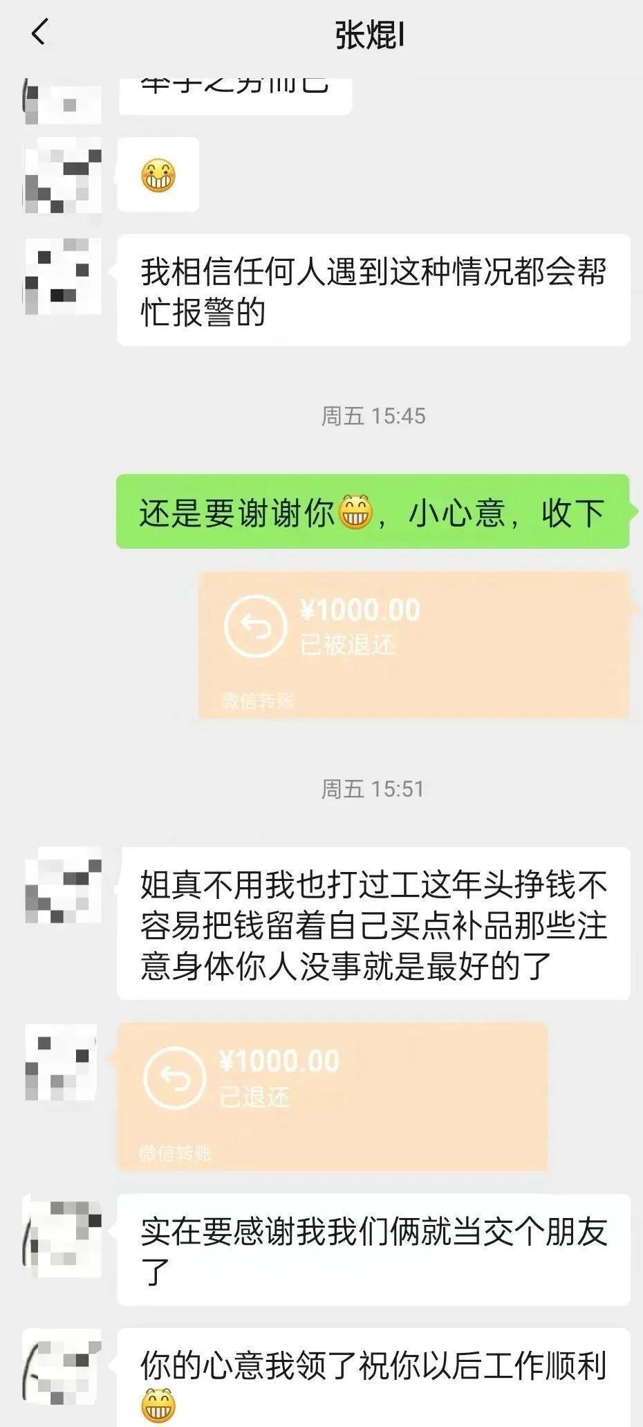 △获救的周女士曾给张焜发红包表示感谢,但被拒绝。