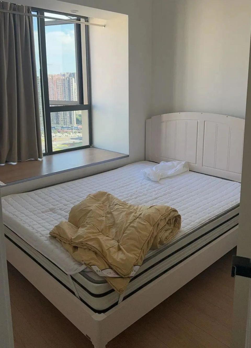 只有一张床和一些床上用品