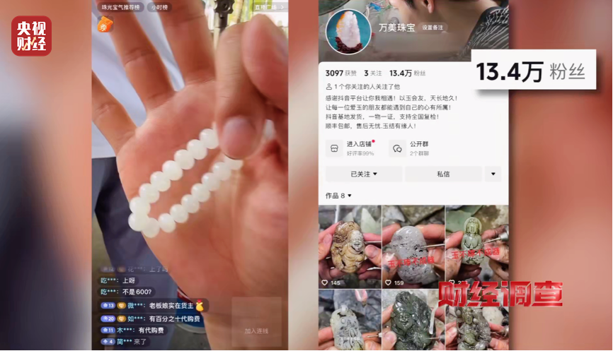 在该公司的“百百福珠宝”直播间,主播们的剧本更为离谱:一名员工扮成外国玉石商人,以即将回国为由急售玉石,声称货真价实。
