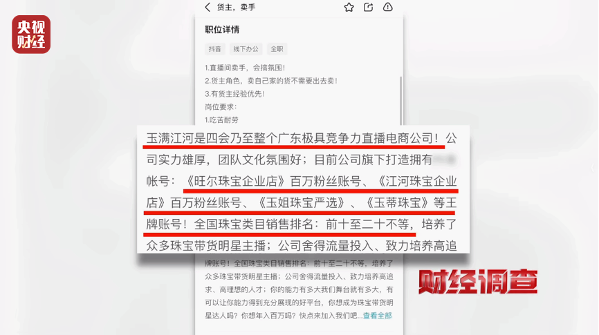 记者应聘进入广东省四会市玉满江河珠宝店。这家珠宝店拥有多个王牌直播账号,珠宝销售全国排名前十至二十。