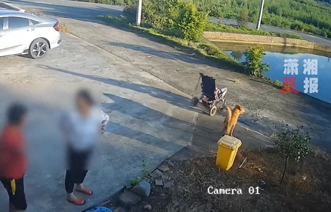 惊险一幕婴儿车顺斜坡翻落鱼塘
