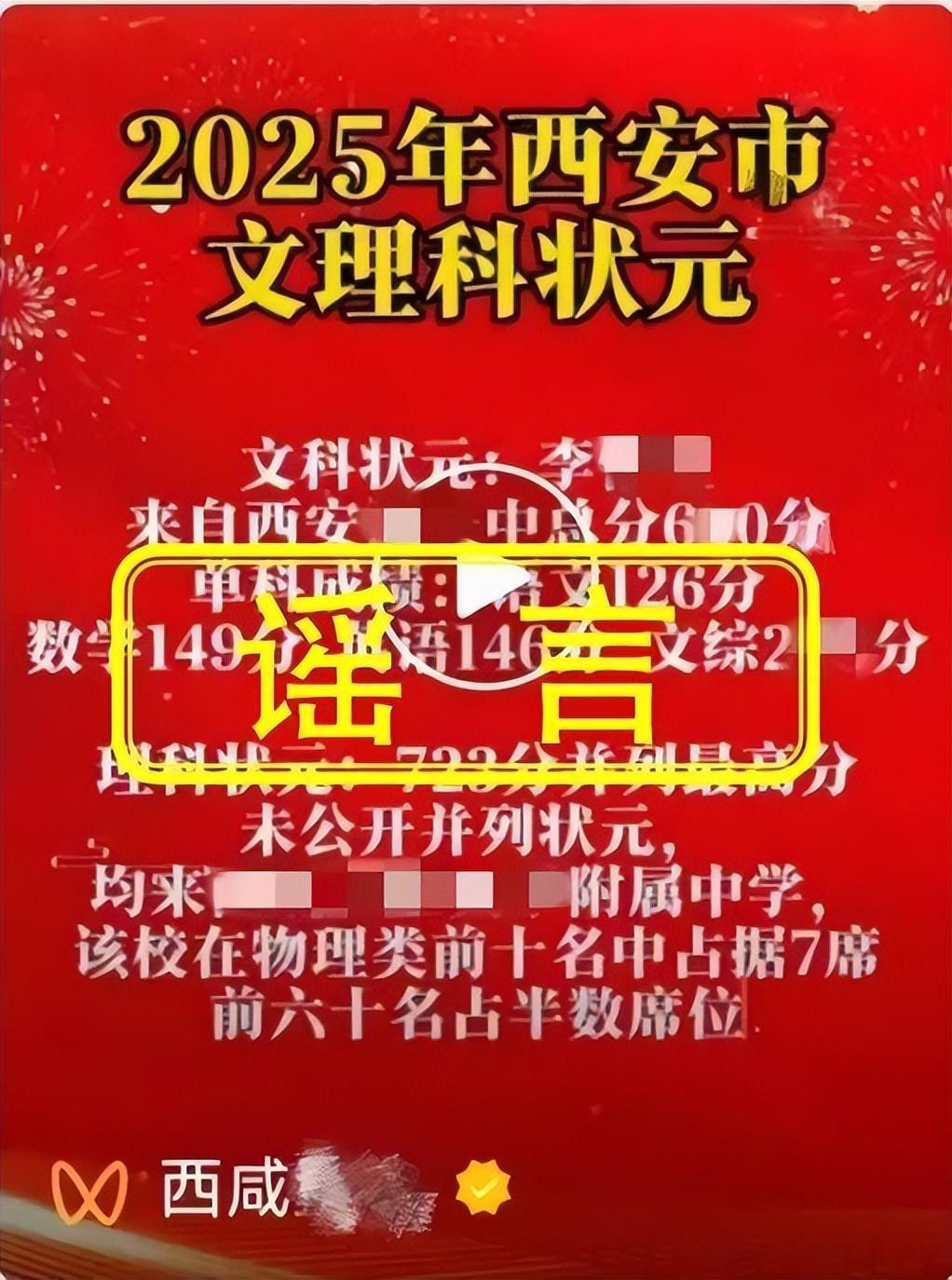 5.公众账号“西咸XX”嫁接拼凑旧闻旧事,发布2025年西安市高考文理科状元成绩单等虚假不实信息,扰乱网络传播秩序。西安市网信、教育、公安等部门联合对账号持有人郭某进行约谈,依据《中华人民共和国网络安全法》《网络信息内容生态治理规定》等法律法规,对郭某予以警告,账号作暂停内容更新处理。