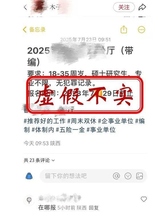 1.社交平台账号“木子XXX”通过“搬运、拼凑、剪辑”等方式,集纳并编造行政机关、企事业单位等虚假招聘信息,严重扰乱公共秩序,破坏网络生态。西安市网信、公安等部门联合对账号持有人李某进行约谈,依据《中华人民共和国网络安全法》《网络信息内容生态治理规定》等法律法规,对李某予以警告,账号作注销处理。
