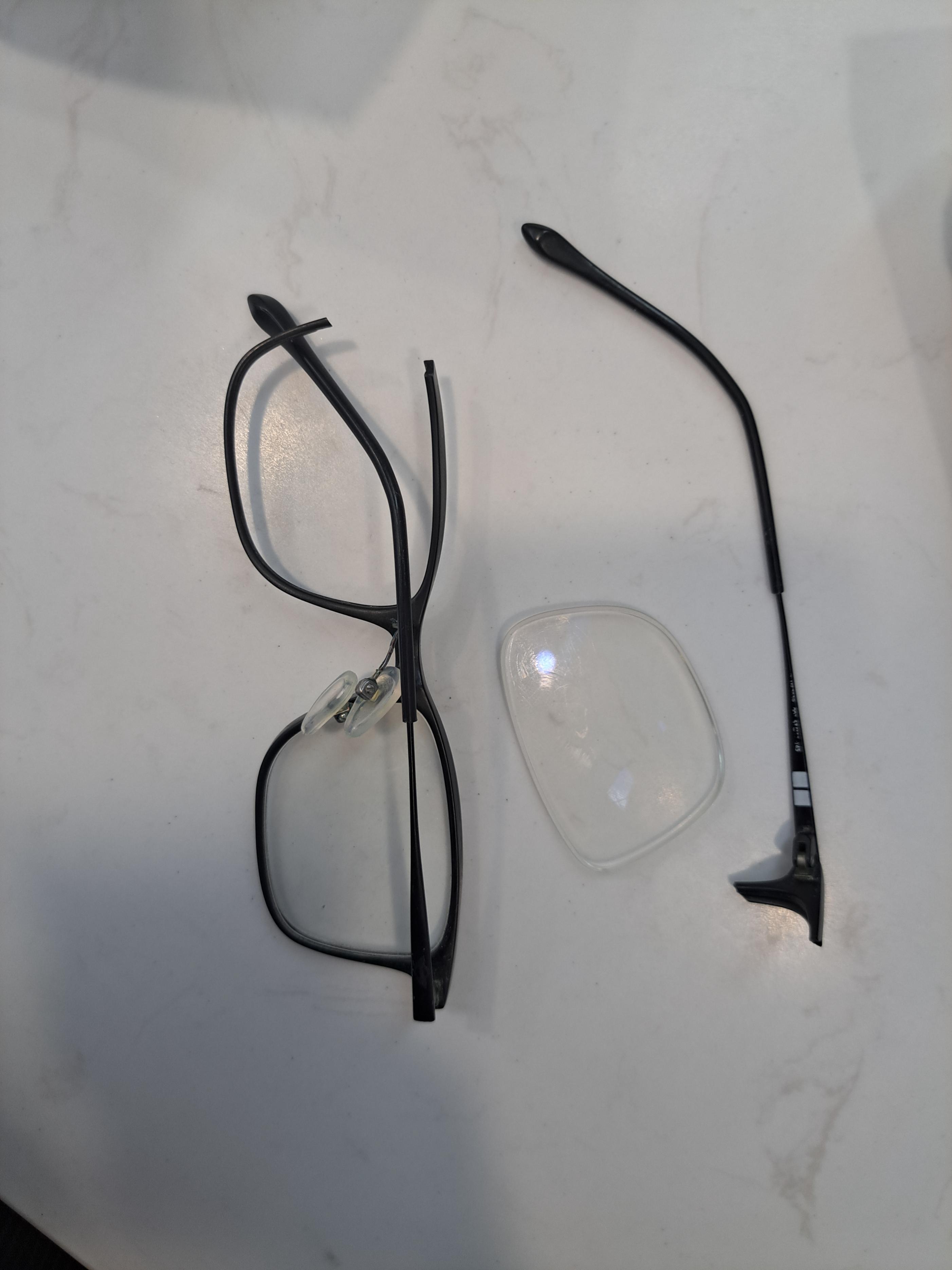 另有照片显示,陈先生的眼镜镜框左侧断裂。