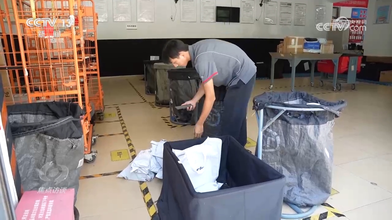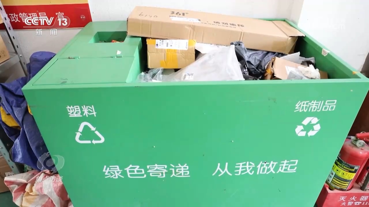 路鹏:“全生物降解胶纸可以实现生物分解,传统的不能分解。根据国标要求,它可以生物分解率达到90%,从2021年就已经开始使用了,如果从全网角度的话,大概已经使用了一亿多个。我们今年开发了含有30%再生材料的袋子,每使用一个可以减少10克的碳排放,目前,我们在全网大概使用了接近一亿个再生材料。”