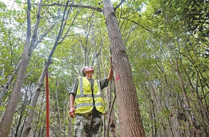 8月12日中午,阳光穿过岠山的林海,在地上投下细碎的光斑。71岁的护林员周云鹏,肩扛灭火把,缓步穿行在林间小径,目光仔细扫过树林。这看似寻常的巡山,是他与这座山默默相约的第29个年头。