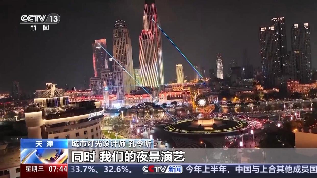 城市灯光设计师 孔令昕:我们通过光影的组合,衬托出城市的魅力,我们在上合期间,海河灯光秀会有“津眼秀”“津门秀”“津钟秀”这三个大秀和十个小节点来展现上合的理念。同时,我们的夜景演艺也增加了更多动态展示内容,让市民们也有一个更好的视觉享受。