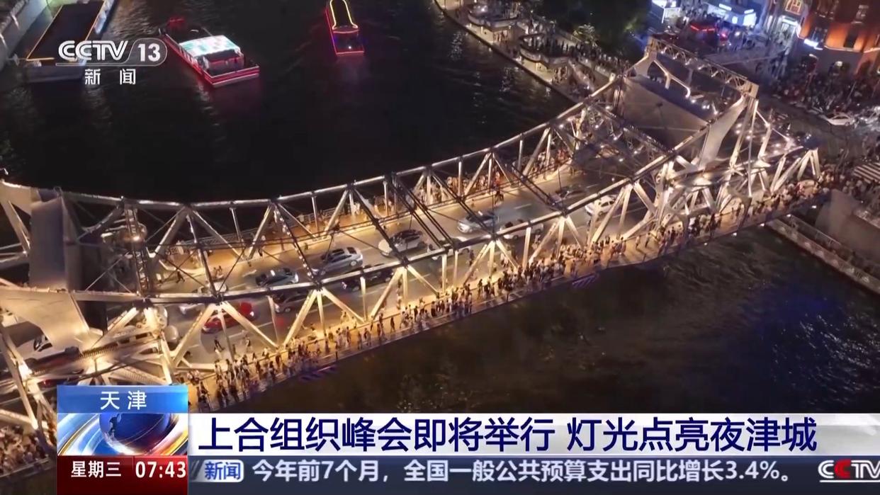 上合组织峰会将于8月31日至9月1日在天津举办,届时20多个国家的领导人和10个国际组织的负责人将出席峰会相关活动。从19日起,天津城市灯光秀将常态化点亮,精彩纷呈的灯光秀,不仅彰显了天津这座城市的魅力,也成了上合国家群众文化交流的“城市会客厅”。