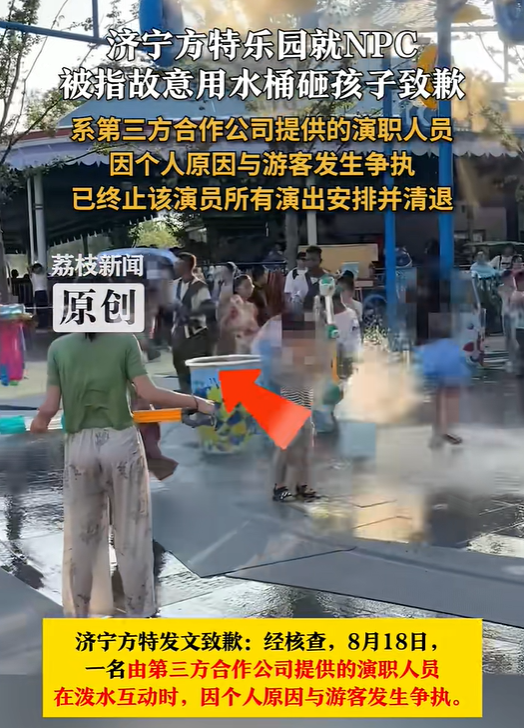 8月19日,方特东方欲晓(济宁)旅游发展有限公司发布道歉声明:关于济宁方特外请演职人员在泼水互动环节中出现的不当行为,给相关游客朋友带来不良体验,济宁方特东方欲晓乐园在此深表歉意!
