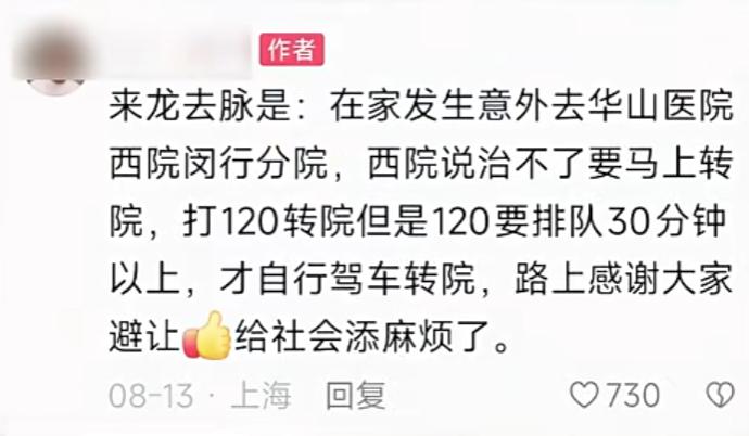 8月11日,上海一女子在家中突发意外,手指被绞肉机打断,其男友立刻报警。上海闵行公安分局交管支队接到警情,立马为求助人开道,一路疾驰送病患至最近的上海华山医院西院区。