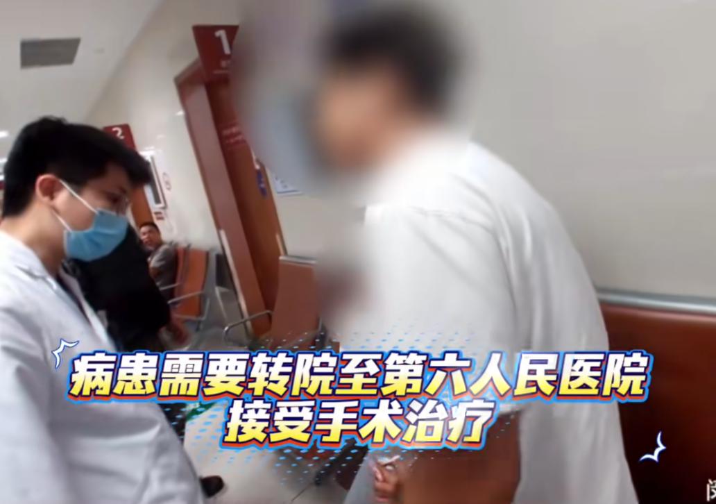 医生接诊后表示,这个情况医院暂时处理不了,需要转至上海第六人民医院,接受更专业的手术治疗。
