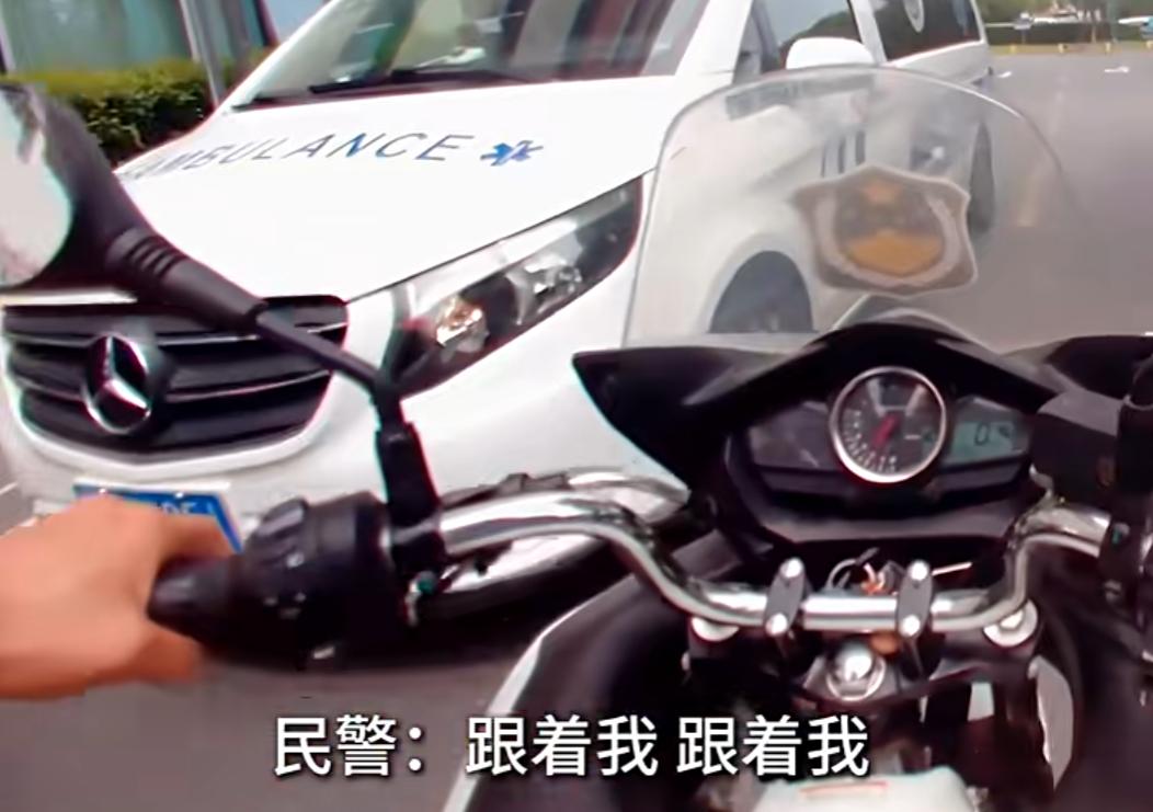 民警小哥立刻反应,骑上警用摩托就说了三个字:“跟着我!”