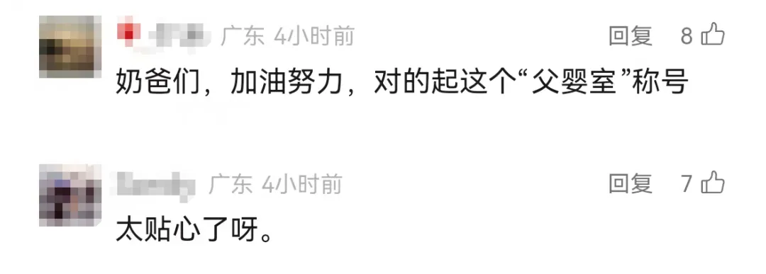 评论区有网友补充道,北京惠多港购物中心除了母婴室外,还设有专门的“父婴室”。