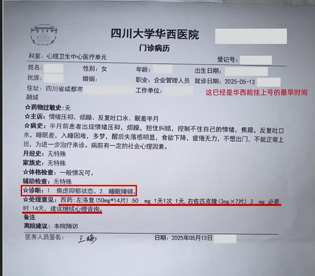 程先生提供了诊断记录,称妻子的精神状态一直不好,“至今就快4个月,我带她去医院,诊断是抑郁、焦虑。我要求公寓管理方公开给我们道歉,拿出合理的赔偿方案,但是都被拒绝。除了刚出事时我要求追责,他们派人上门拎水果道歉之外,3个多月来对我妻子精神抑郁,他们没有问候关心过一句。”