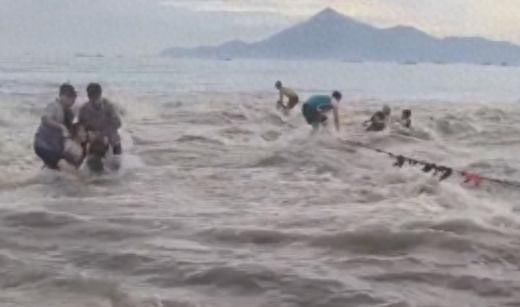 另有网友发布的视频显示,在发浑的海水中,多名游客在水中依靠绳索往岸边走;一名女士四肢瘫软,被两名男子一人拉着一只手臂,往岸上走;有的大人抱着小孩艰难地逃生,远处还有几艘行驶的摩托艇。