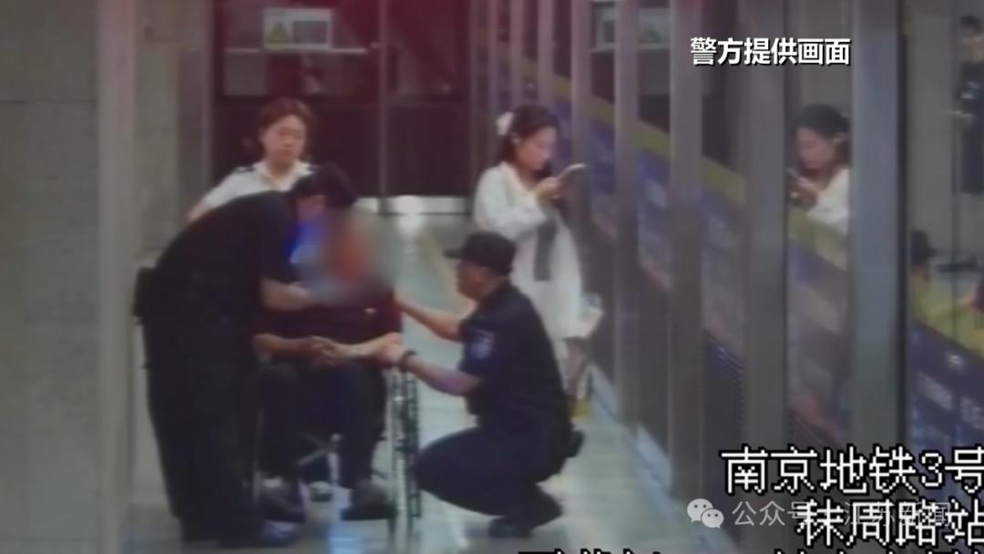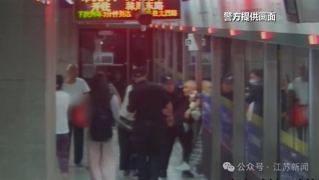当列车驶入武定门站时,正在站台巡逻的辅警匡攀科听到了乘客的求助。他冲进车厢,与邹月宁默契配合:一个维持秩序、联系下一站接应,一个继续进行密切观察。很快,列车抵达雨花门站,在热心乘客的协助下,老人被小心翼翼地抬下车。