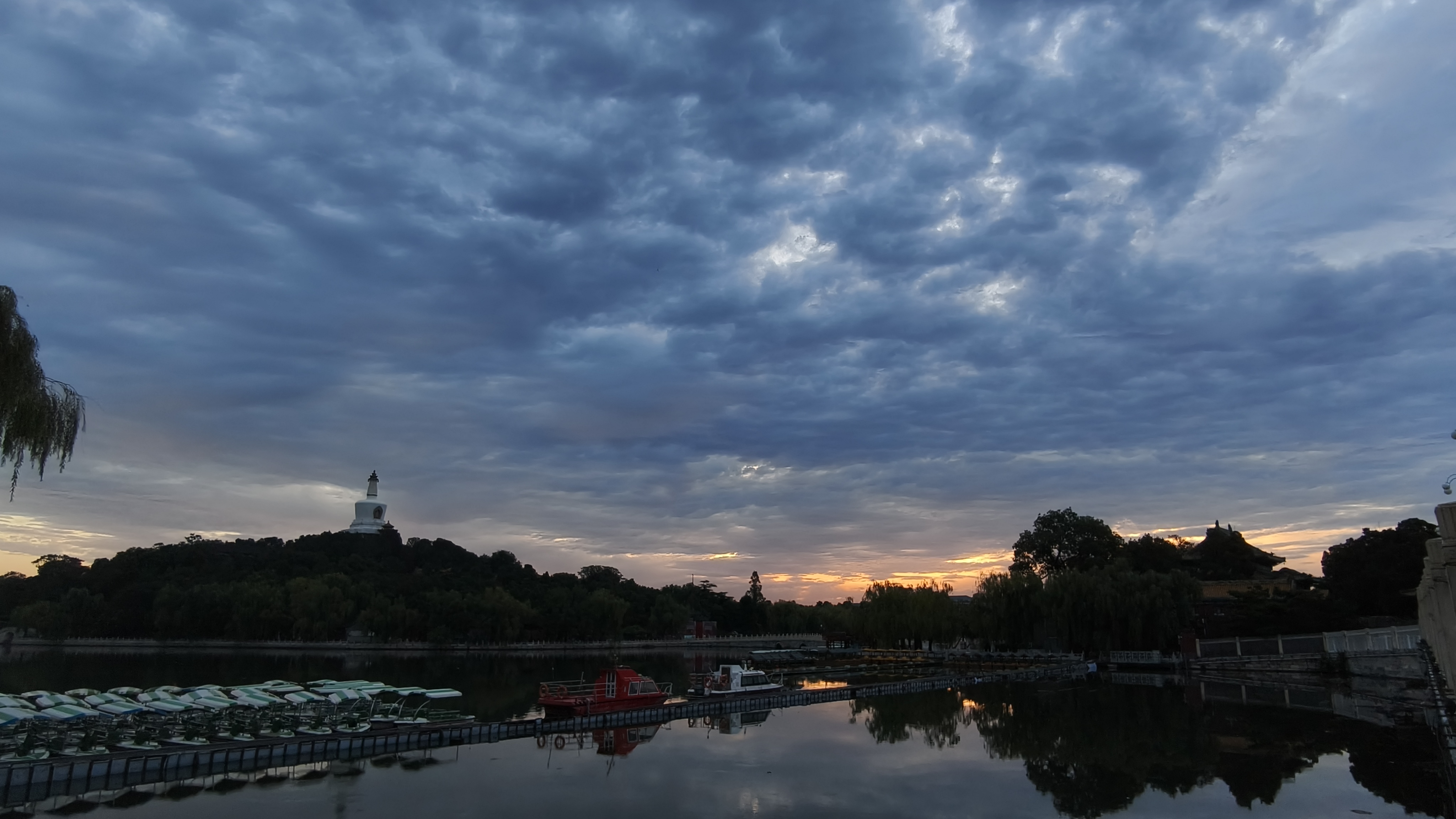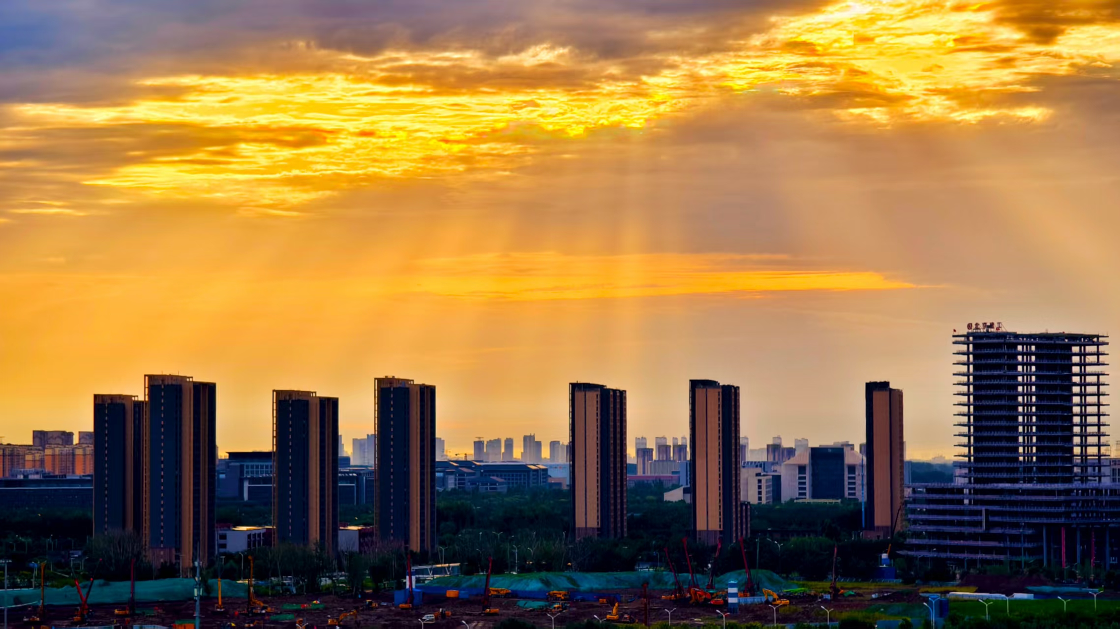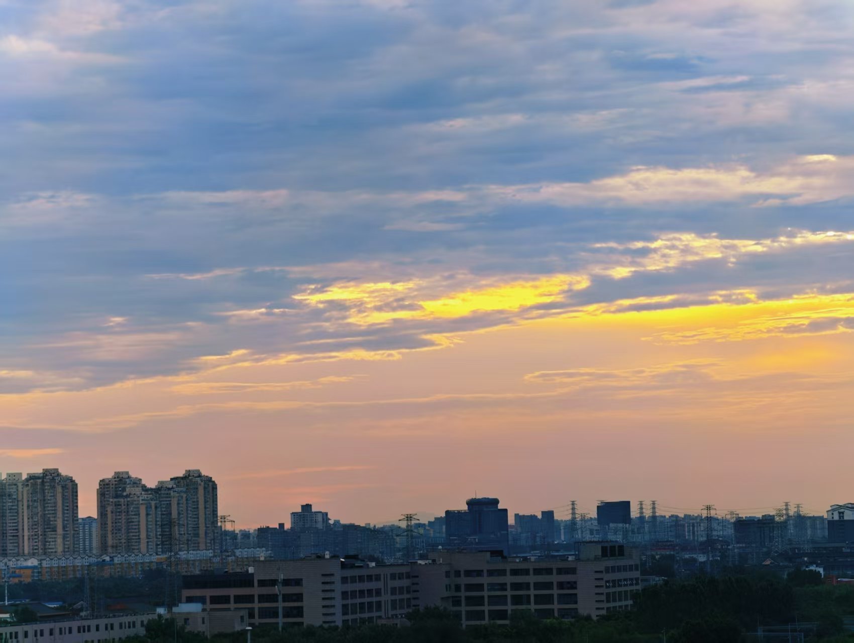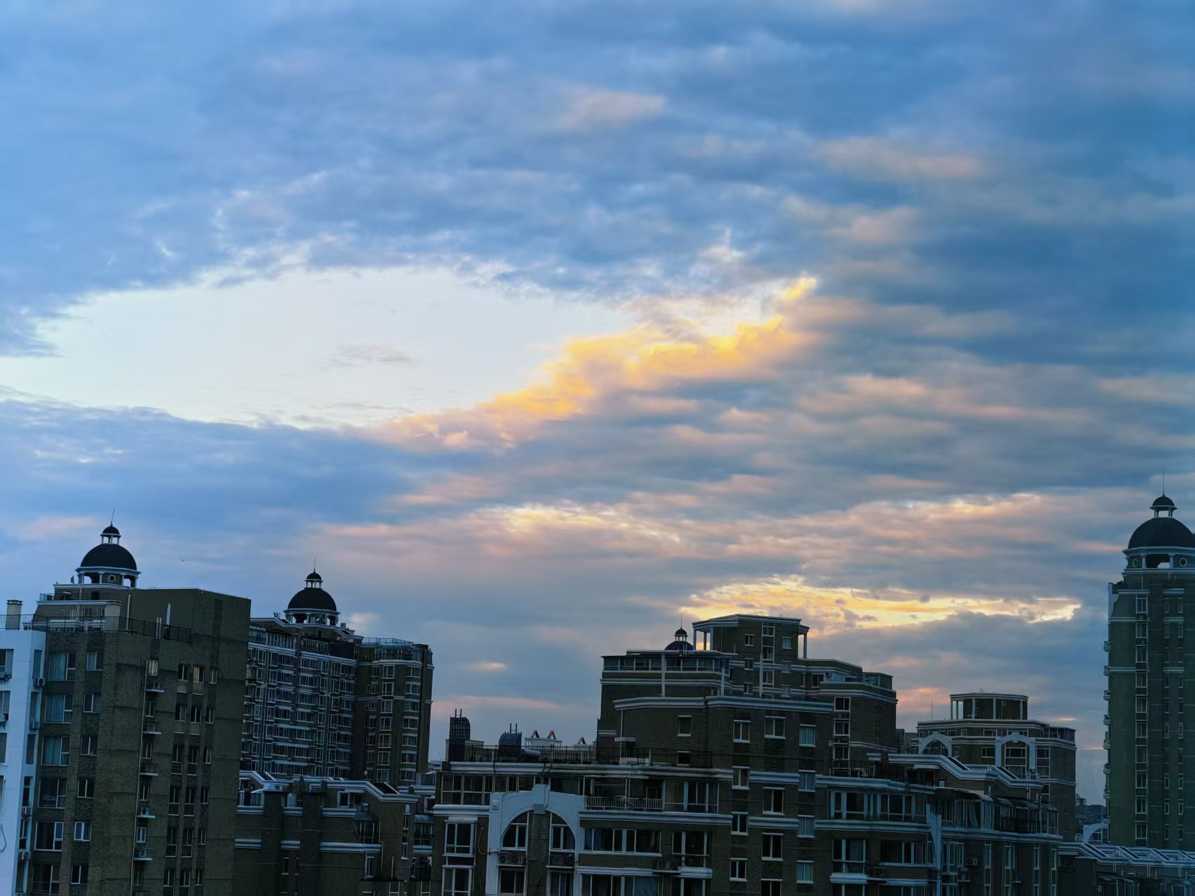 今晨,瑰丽霞光穿透云层,北京出现绝美丁达尔光