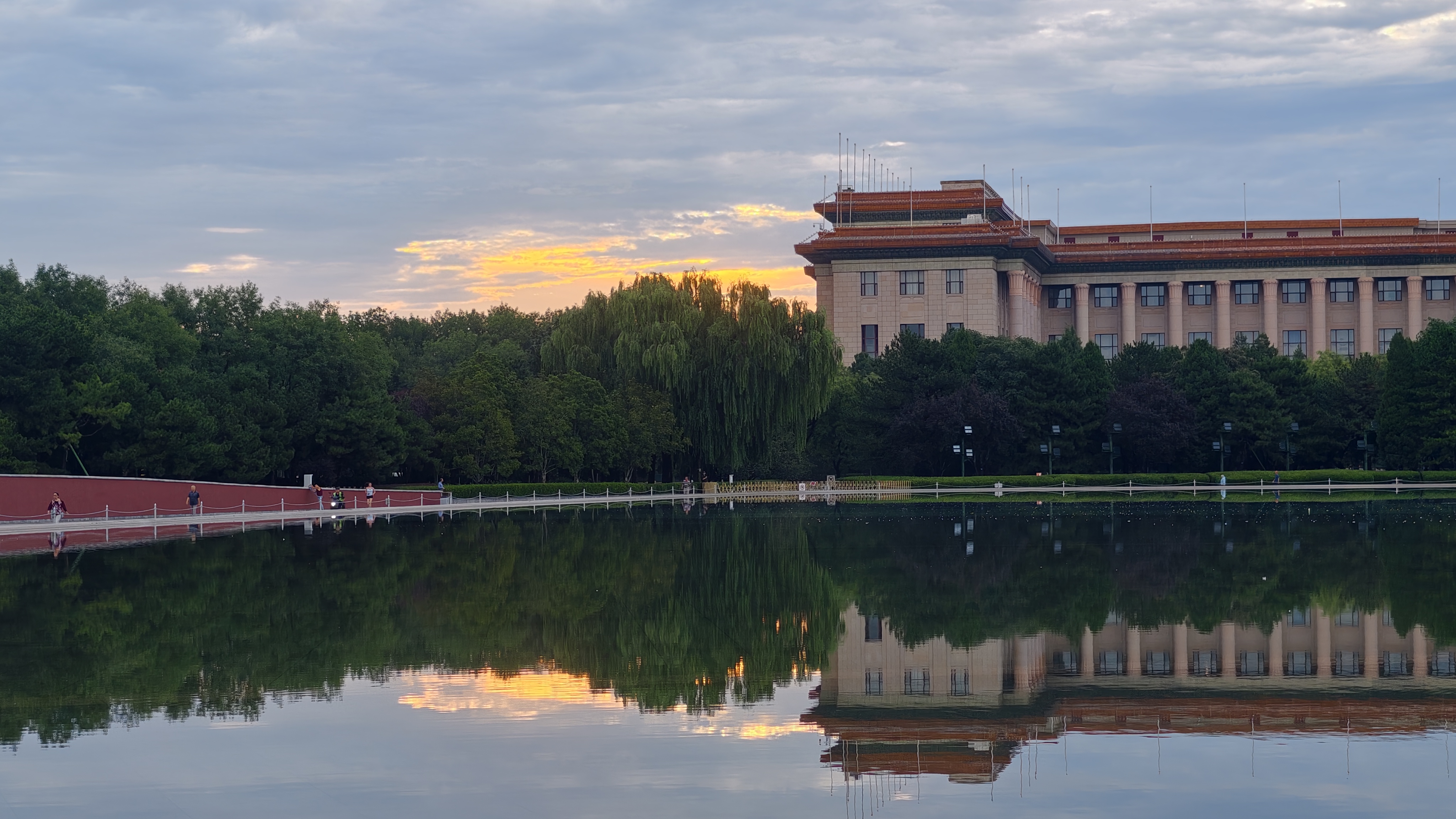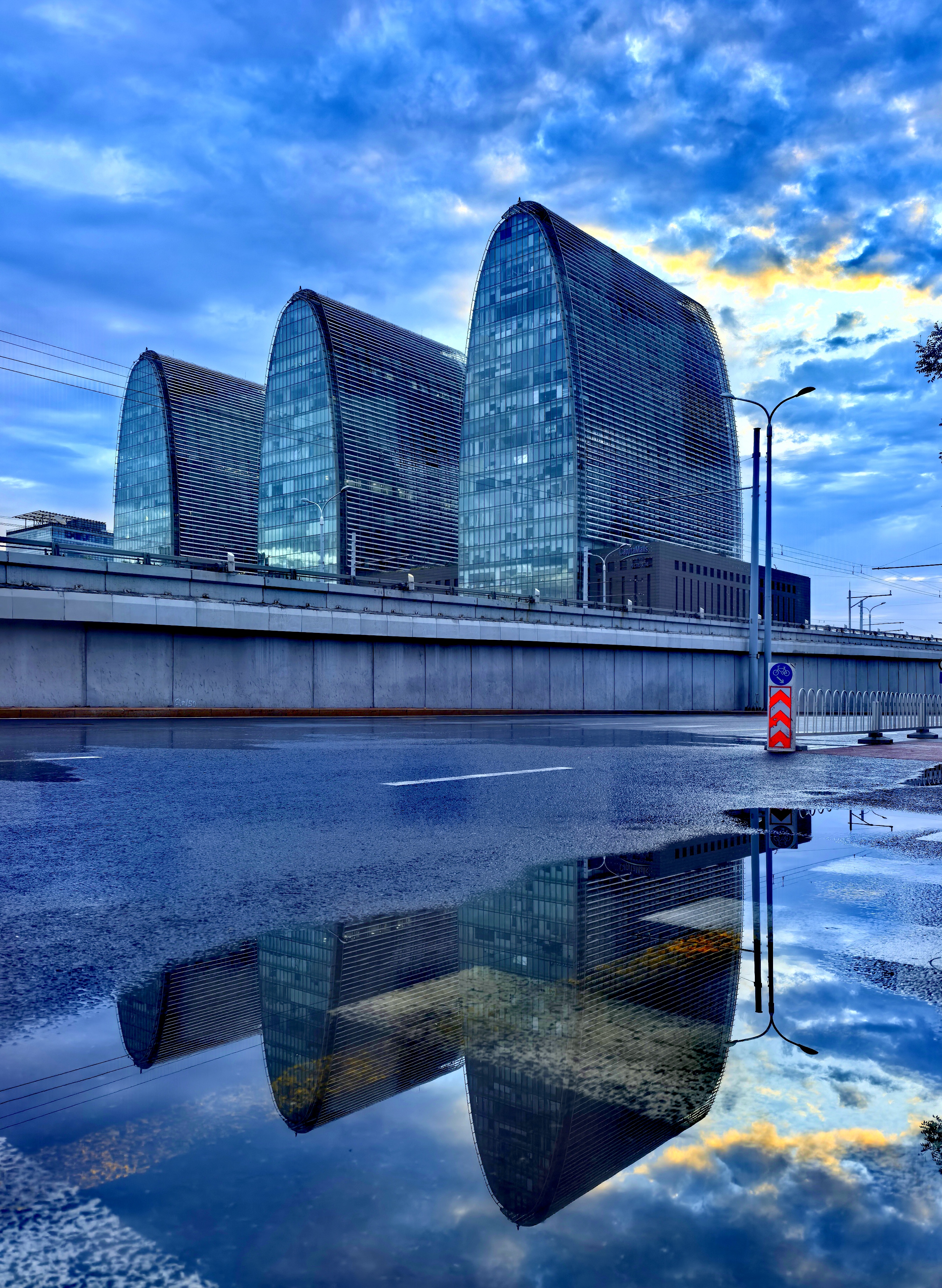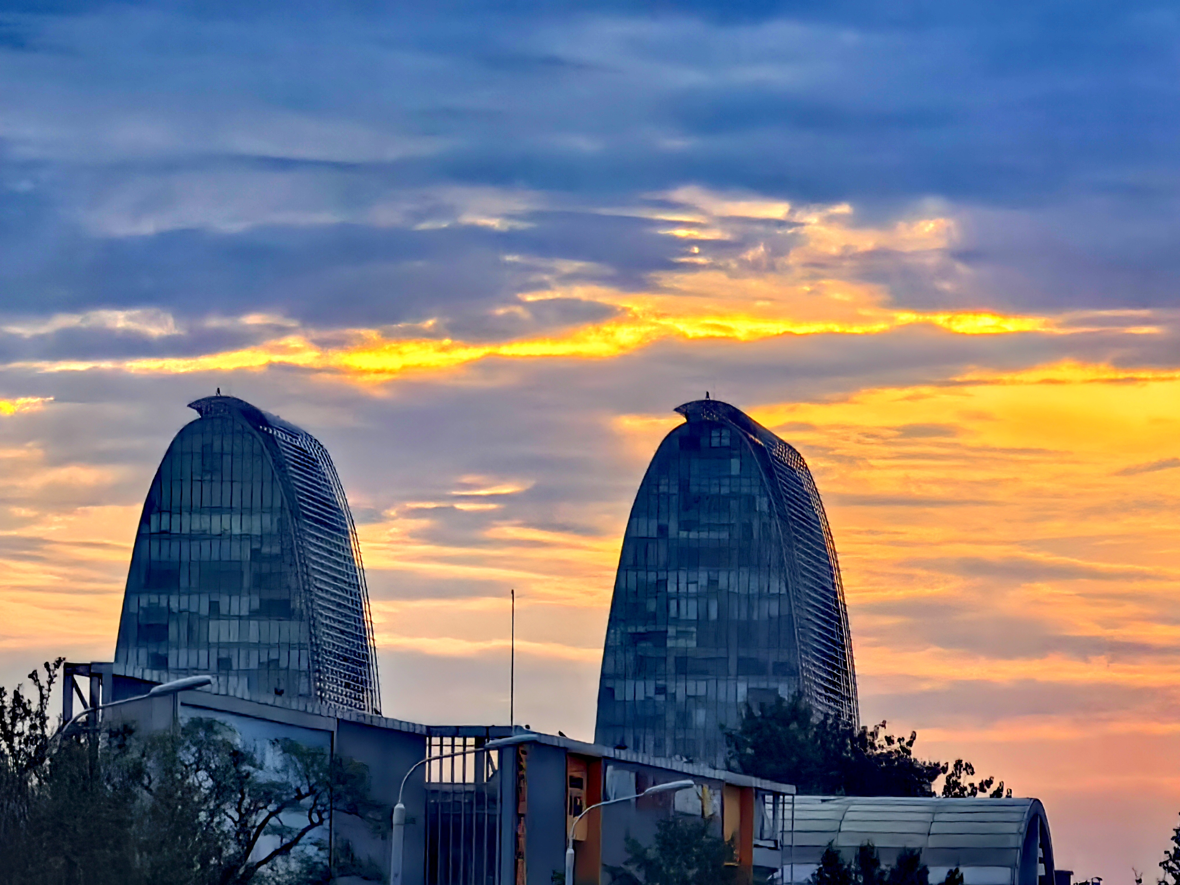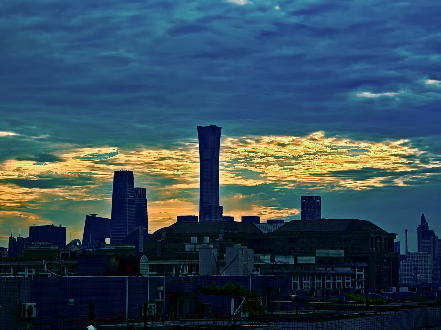 今晨,瑰丽霞光穿透云层,北京出现绝美丁达尔光