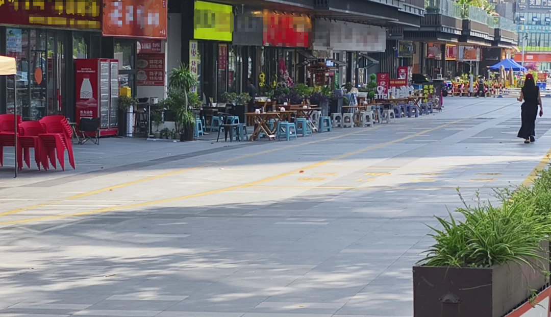 从窗户向下俯瞰,正下方是一条商业街,有饭店、超市、饮品店等,对面还有一家店在搞活动,但是,始终没有人抬头看到我,也可能看到了我,以为我在晾衣服或者搞怪吧。
