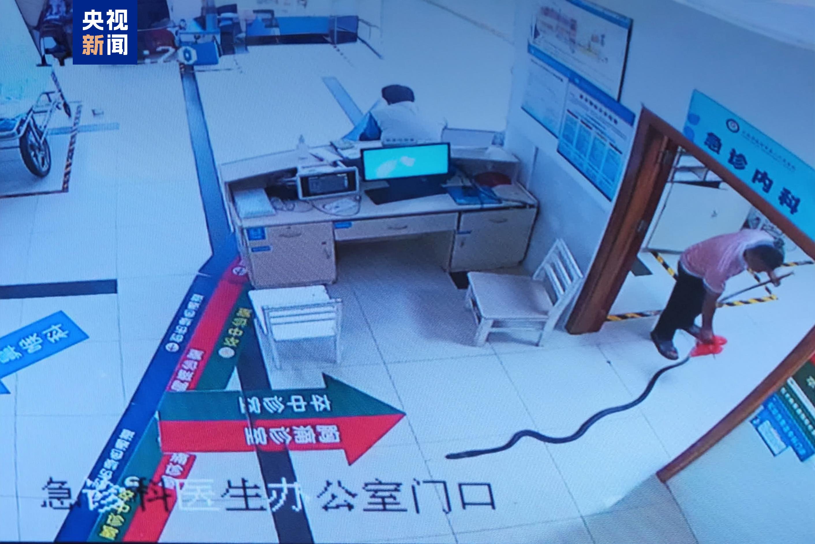 △当日监控画面拍摄下患者带蛇就医场景( 受访者提供)