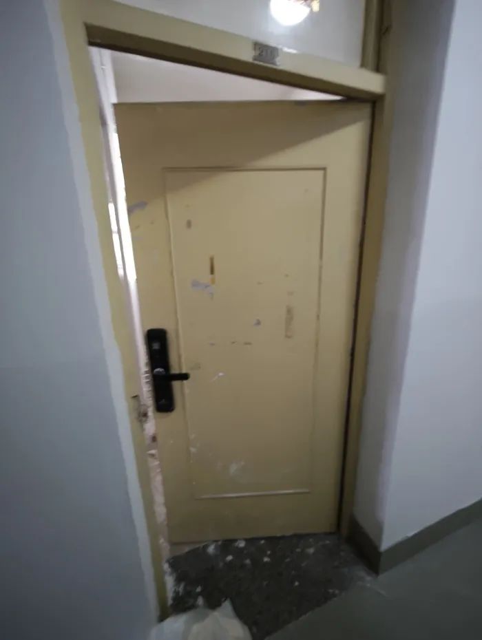 在宿舍楼内,目前已有部分宿舍更换了智能门锁。这些智能门锁设有扫码开锁、“贴一贴”开锁功能,还配有钥匙孔可供机械钥匙开锁,但尚未通电投入使用,大部分宿舍并未更换智能门锁仍在使用原来的锁具。