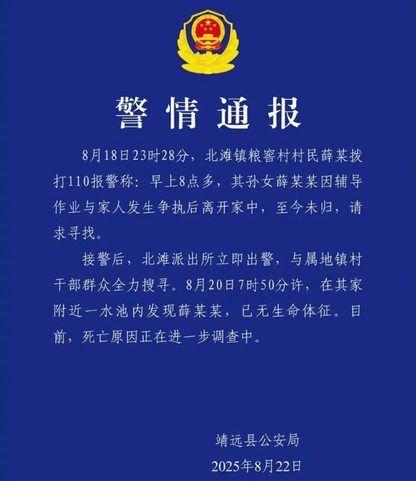 8月21日,一则消息在网上流传,那个被胡雷资助的懂事女孩意外去世了。据警方通报,8月18日,甘肃靖远县北滩镇粮窖村,初二女孩薛明娟(化名)在因辅导作业与家人发生争执后,离家失踪。两天后,她在附近水池中被发现,已无生命体征。两年前,身有残疾的胡雷在靖远县做公益时与受资助小女孩的一段视频让无数人感动。视频中女孩薛明娟将牛奶递给胡雷,并为他插上吸管。得知眼前的残疾人就是资助人时,她忍不住泪如雨下。这段画面被人们称为“善良和感恩的双向奔赴”。后来,胡雷定期到薛家每月资助1000元,并一直把薛明娟当作自己的女儿。两年来,从宁夏中卫到甘肃白银,这200公里的路程,他往返了许多次。8月19日凌晨,胡雷从手机上看到寻人启事,得知薛明娟失踪的消息,他说女孩的爷爷奶奶没敢给他打电话。在薛明娟去世后的夜晚,他感到无比难过,“我们能拉他们一把,但是我们救不了他们的心。”甘肃靖远县公安局在警情通报中还原了事件经过:8月18日23时28分,北滩镇粮窖村村民薛某拨打110报警称:早上8点多,其孙女薛某某因辅导作业与家人发生争执后离开家中,至今未归,请求寻找。接警后,北滩派出所立即出警,与属地镇村干部群众全力搜寻。8月20日7时50分许,在其家附近一水池内发现薛某某,已无生命体征。目前,死亡原因正在进一步调查中。8月22日下午,胡雷在接受新京报记者采访的电话里断断续续地哭泣。他说,他与薛明娟在2023年2月第一次见面之后常有来往,这两年,他将薛明娟视为自己的孩子。▲22日晚,胡雷在中卫摆摊,友人说其近日精神状态一直欠佳。 受访者供图但他也不知道薛明娟因何离世。8月22日凌晨,胡雷发了一条朋友圈,“我真的想不通,我心好痛,每看见一个学生,一个孩子,我都当自己的亲生孩子,这一个小姑娘我当自己的姑娘对待着,我能把我的生命给这些孩子……当我知道(后如)刀割我的心,我好痛真的好痛。”网络上关于薛明娟的死因多有猜测,8月22日14时许,胡雷在家中直播,他重复着不要信谣传谣的话语,眼泪不停地掉,不到五分钟他哽咽着结束了这场直播。8月22日下午,新京报记者多次联系粮窖村的村干部,截至发稿电话无人接听。在媒体报道中,从小罹患小儿麻痹、双腿落下残疾,要跪地行走的胡雷已坚持做公益16年,靠卖废品、卖小工艺品以及善心人士给他的救助金帮助了500多名贫困学生,累计捐款超100万元。他没有成家,也没有自己的孩子,但始终关爱着贫困的孩子们。薛明娟与胡雷的那段视频,拍摄于2023年2月。那天初春乍寒,胡雷坐着朋友冯健(化名)的小货车,一路从宁夏中卫开到甘肃白银,准备将一车学习物资发放给学生们。胡雷在路上显得十分开心,仰着脖子“咿咿呀呀”地唱了许久。“胡雷每次出去做公益都很开心,一开心就爱唱歌。”冯健对新京报记者说。胡雷匍匐着出现在学校走廊时,孩子们好奇地盯着他们一行人,本该热闹的课间瞬间变得安静。胡雷早已习惯了这样的场景,他轻车熟路地爬到教室的讲台上,对孩子们说,放学后,胡雷叔叔在教学楼前给大家免费发放学习用品。“大家一定要好好学习,学习的苦不是苦。”冯健记得,孩子们听闻这个消息后“开心得手舞足蹈”,安静的教室里又重新热闹起来。胡雷也很开心,他用手撑地,跃下讲台,向门外挪去。此时有一个小女孩追了出来,主动拍了拍胡雷的肩膀,以示感谢。“那个女孩就是薛明娟。”这是胡雷一行人第一次与薛明娟产生交集。放学后,学生们鱼贯而出,叽叽喳喳地将胡雷等人围起来。薛明娟没有说话,悄悄凑到胡雷身边,把学校发的牛奶插上吸管,递到了胡雷嘴里。胡雷接过牛奶,跟她说:“宁愿吃学习的苦,也不要吃社会上的苦。”薛明娟轻轻地弯着腰,不停点头。临别时,她对胡雷说:“叔叔,希望你永远平安。”说完她突然捂住嘴,泪如雨下。这段视频传到网上后,很快成为热搜。网友们心疼薛明娟的懂事,小小年纪就懂感恩;有人敬佩胡雷的坚韧,活成了别人的“拐杖”;更多人说:“这哪里是资助,这是善良和感恩的双向奔赴!”此后,胡雷与冯健多次去薛明娟家中探望。半年后再见到女孩,她已剪短了头发。女孩的爷爷奶奶拉着胡雷的手不停地哭,“谢谢”憋在嘴边说不出来。胡雷多次叮嘱薛明娟的爷爷奶奶,说让女孩远离聚光灯。8月22日,新京报记者联系到薛明娟某位亲属的朋友,对方表示如今薛明娟的家人依然“不希望被外界打扰”。这两年来,胡雷与薛明娟一家一直保持着联系。他熟悉这“穷苦的一家”,六个孩子与年迈的爷爷奶奶一起生活,早年间薛明娟的父母离婚,现在家里只靠父亲在外地打工,一天赚两三百元。胡雷曾感受到这家人的互帮互助,家里最大的孩子已经二十多岁,暑假结束后升入大三,老大下面还有两个孩子即将高考,他们怕家里人供不起,互相商量着,考不上的人要打工供考上的人继续读书。胡雷上一次见到薛明娟是在今年4月,他和朋友一起到薛家所在的白银市靖远县粮窖村,车里塞满了带给孩子们的东西,芒果、牛奶、鸡蛋、牛肉,还有衣服鞋子。那次见面,薛明娟一如往常为他拿凳子、倒水,还对他说,“叔叔,照顾好自己。”家里人都说,女孩敏感细腻,但说话不多,也就胡雷到家里时能多说几句。冯健记得,每次去,薛明娟都会热情主动地招呼客人。冯健打趣说,“现在你还小,胡雷叔叔能帮助你;以后你长大了,胡雷叔叔老了,你记得来看
