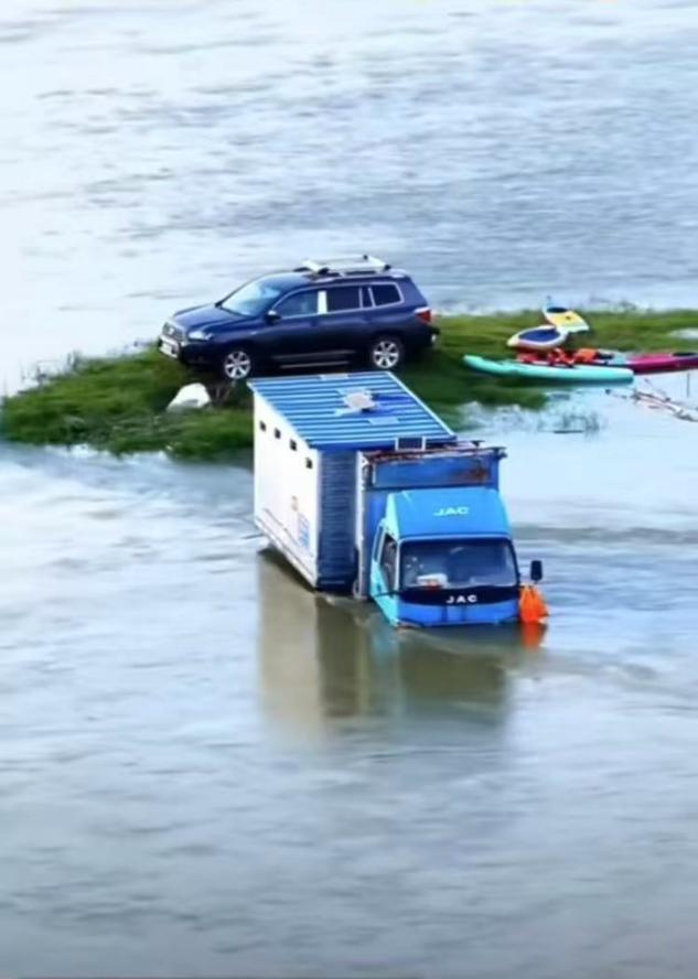 这位领导证实称,视频就是露营基地一位老板拍的,“他是桃花岛的经营者,老板自己的车停在那里。岛上两辆车,一个是改成简易厕所,放到那里不开走,还有一辆黑色SUV,也是老板自己的车。枯水期会有路面露出来,他会用私家车拉货。”