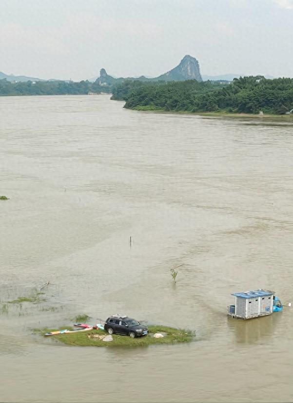 8月22日,广西柳州市民反映柳城县洞诺榕江大桥桃花岛露营地,因为暴雨涨水,有人员车辆被困岛心。