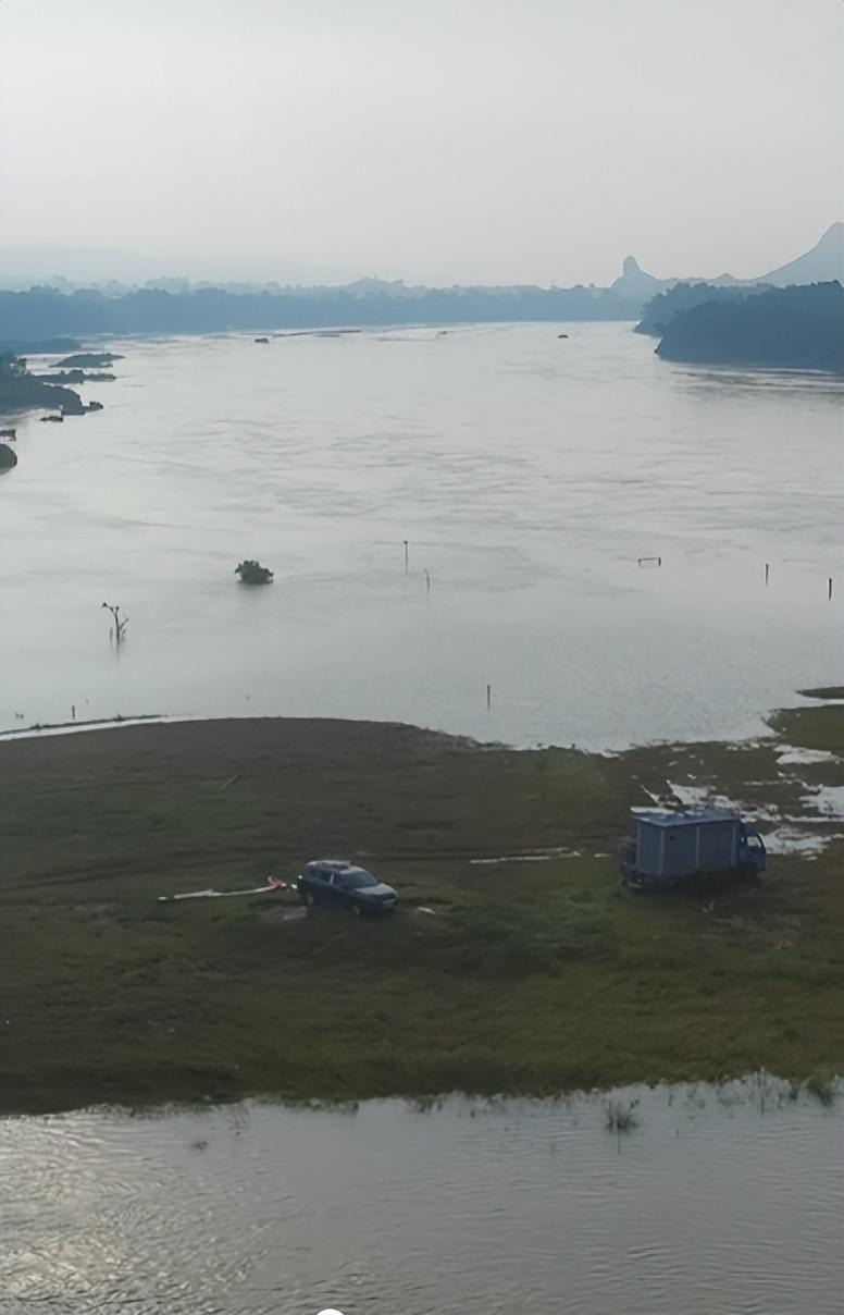 “现在人和车在这里没事,已经开始退水了,暂时没有下雨,水大了就不上岛了。”