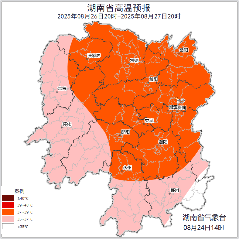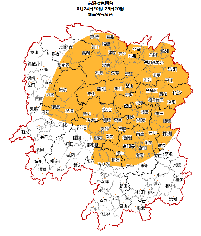 湖南省气象台08月24日16时升级发布高温橙色预警: