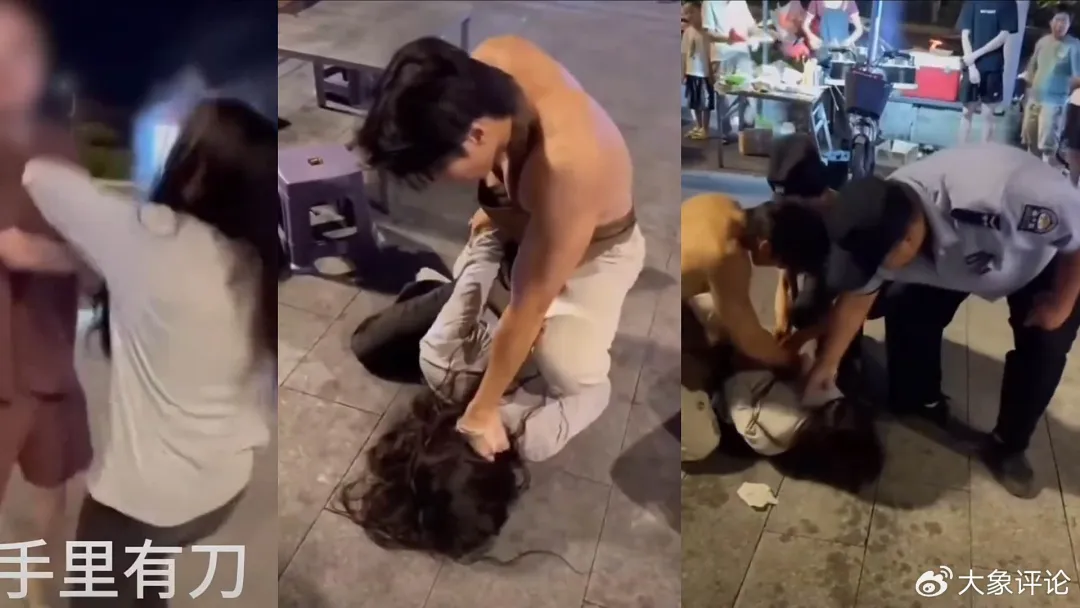 近日,广东广州一名网友拍摄视频反映“女子手持刀具被壮汉制服”一事引发关注。