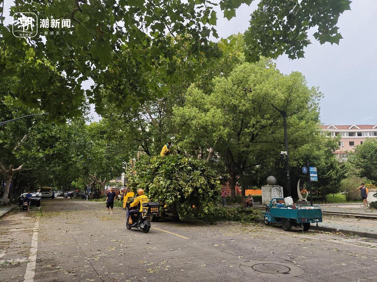 记者在现场看到,有穿着拱墅园林制服的工作人员介绍,他们下午2点多就来这边了,一直在现场处理残枝。