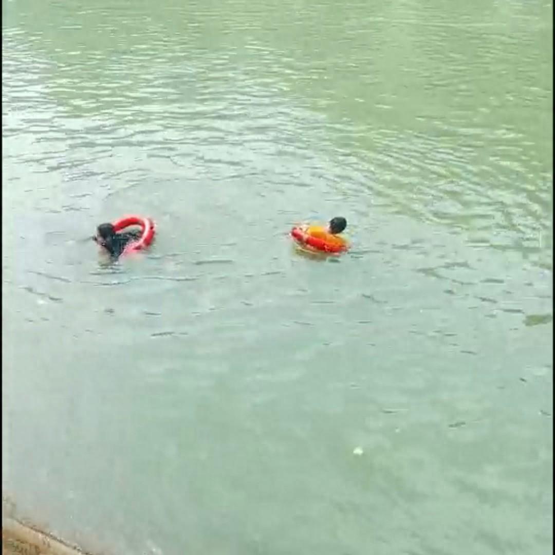 救援视频显示,救人女子和被救男子身上套有救生圈。男子已明显力竭,险些滑下救生圈。而救人女子正套着救生圈游向岸边,但因岸边较为陡峭,二人均无法上岸。此时救人女子声音慌张,向岸上人说“我好害怕。”