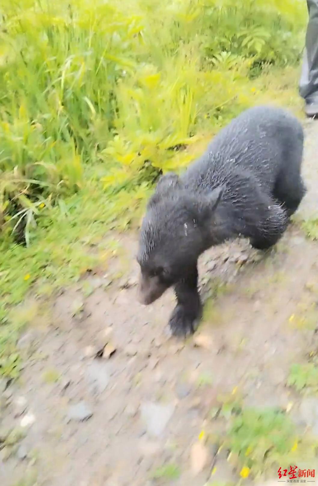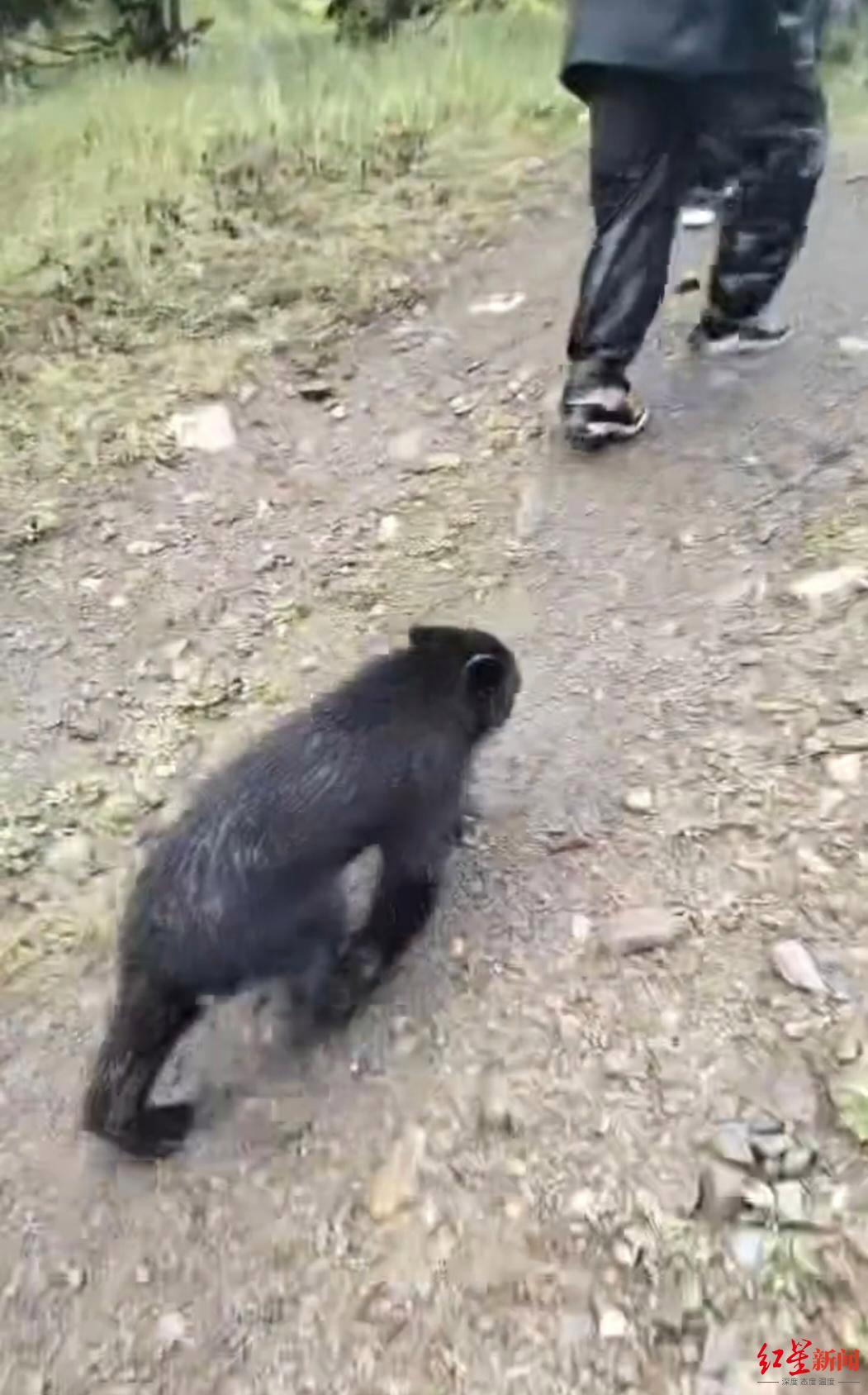 25日,目击村民告诉红星新闻记者,这只小黑熊可能是迷路找不到熊妈妈,或许是将同行的大黑狗误认成了它的熊妈妈,便一路紧紧跟在他们身后,不愿离开。黑熊是国家二级保护动物,因担心有大黑熊出没伤人,他们一路奔跑试图甩掉小黑熊,“还疑似听到了大熊的叫声。”