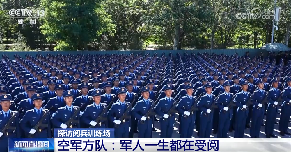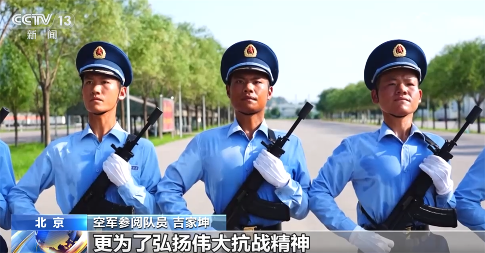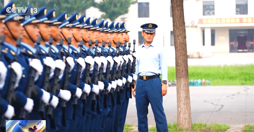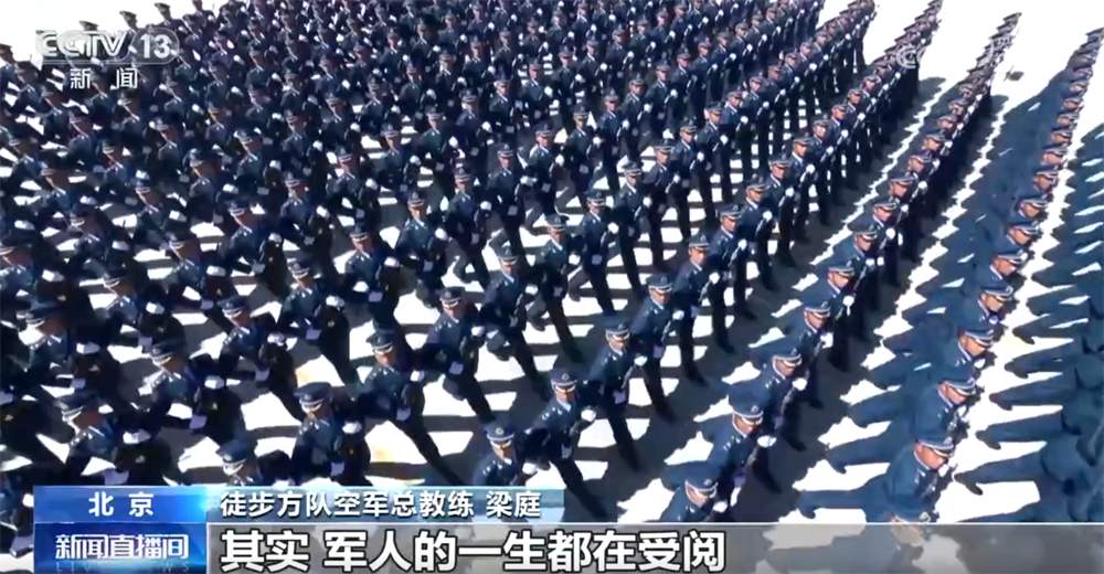 空军徒步方队总教练梁庭称:“从组训到现在,我们已经达到方队成型、动作统一、步伐整齐、士气高昂的效果。我们有信心在9月3日能以最佳效果站上天安门广场,接受党和人民的检阅。其实,军人的一生都在受阅,不仅在今天的阅兵场,更在明天的演训场。”