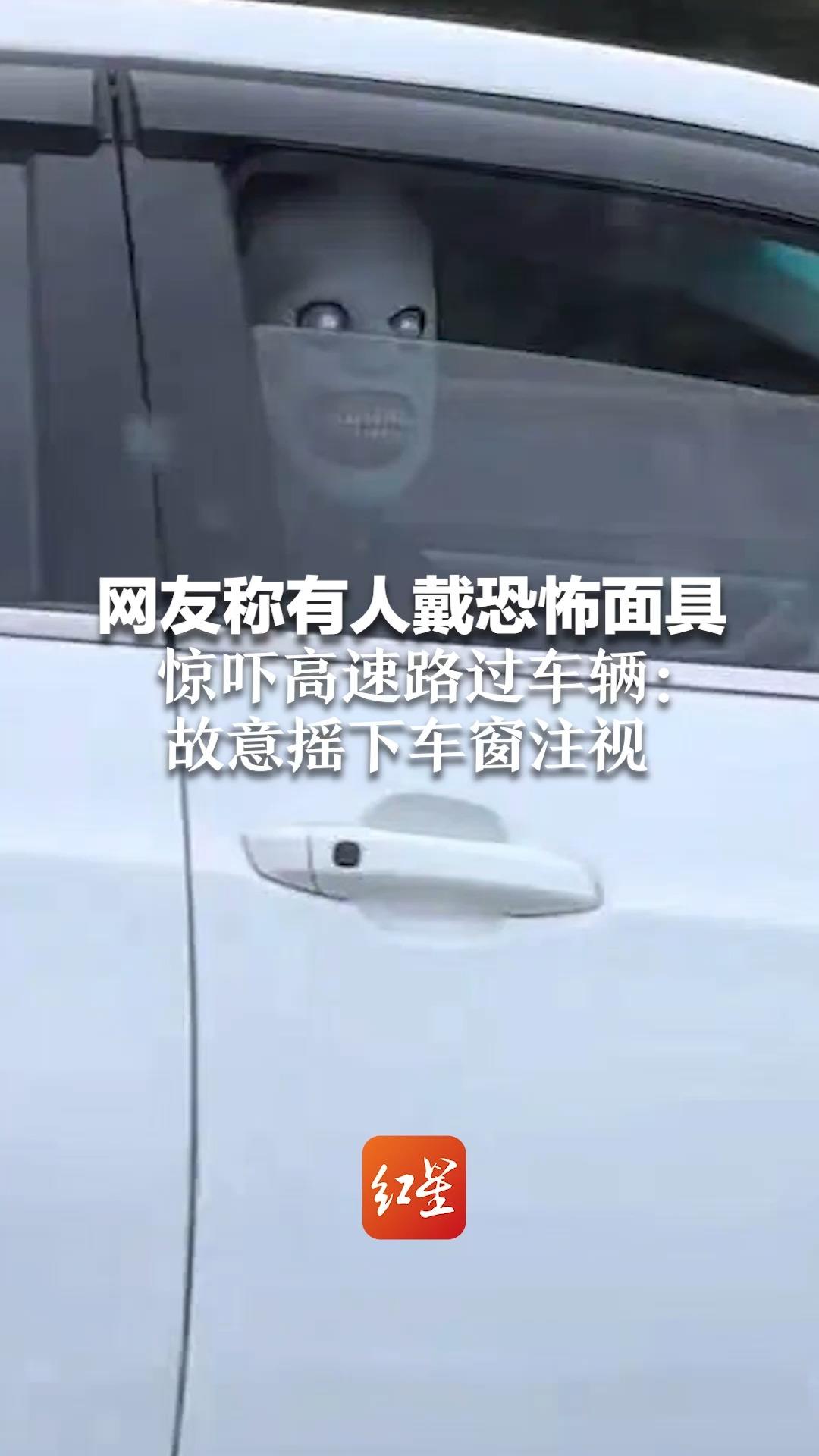 网传视频显示,当时两辆车同向行驶,其中另一辆车副驾驶上突然出现戴面具的人,当时,戴面具的人开着车窗微微起身看向过往车辆,然后将车窗全部摇下又转头注视。