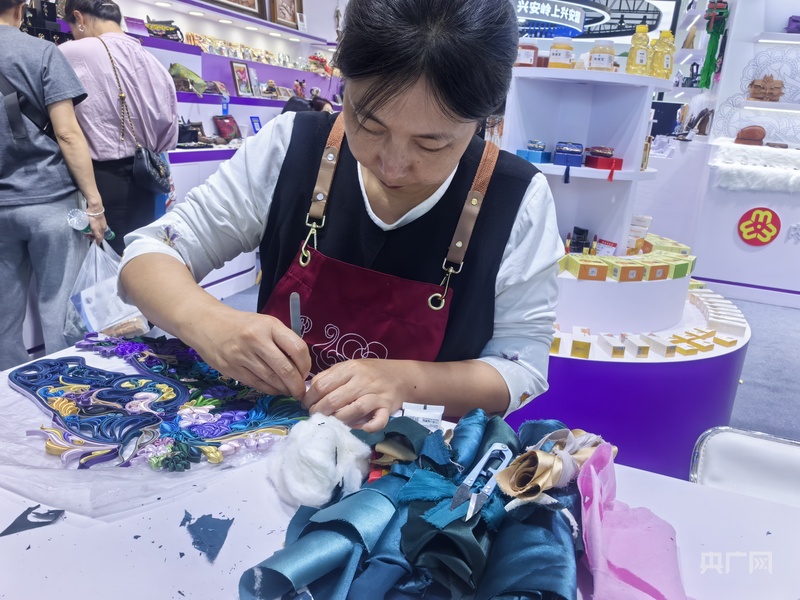 布丝瑰手工艺人制作盘扣工艺品(央广网记者邵玉琴摄)