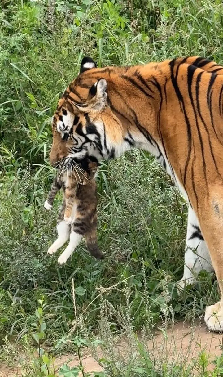 多名网友表示,事发于8月25日,具体情况不清楚。记者私信多名发帖者,暂未获回应。有网友调侃,老虎“撸猫没轻没重”;还有网友调侃,老虎咬猫“算不算欺负师父”;也有网友对小猫表示同情,希望小猫能“虎口脱险”。