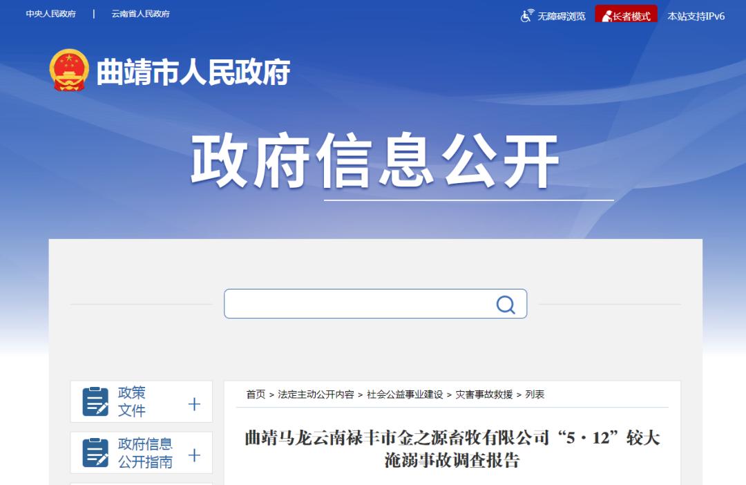 调查报告中披露,2025年4月15日,曲靖市委政府下发进一步加强当前安全生产工作的紧急通知,明确要求全面起底开展安全风险隐患大排查大整治大排除工作。2025年以来到事故发生时,有关部门未到马龙代养场开展过安全检查。