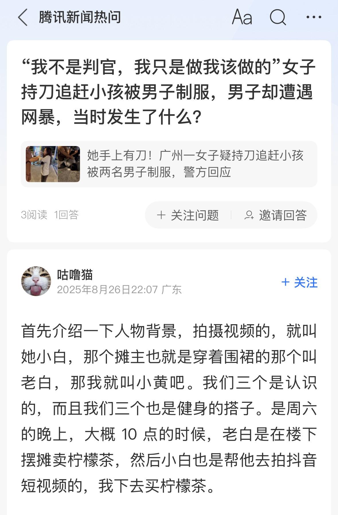 小黄说他不害怕被网暴,但是比较担心朋友小白,有很多网友在攻击她拖住小孩,但其实小黄是把男孩护住,并没有网上所说的“让持刀女子更好伤害他”。