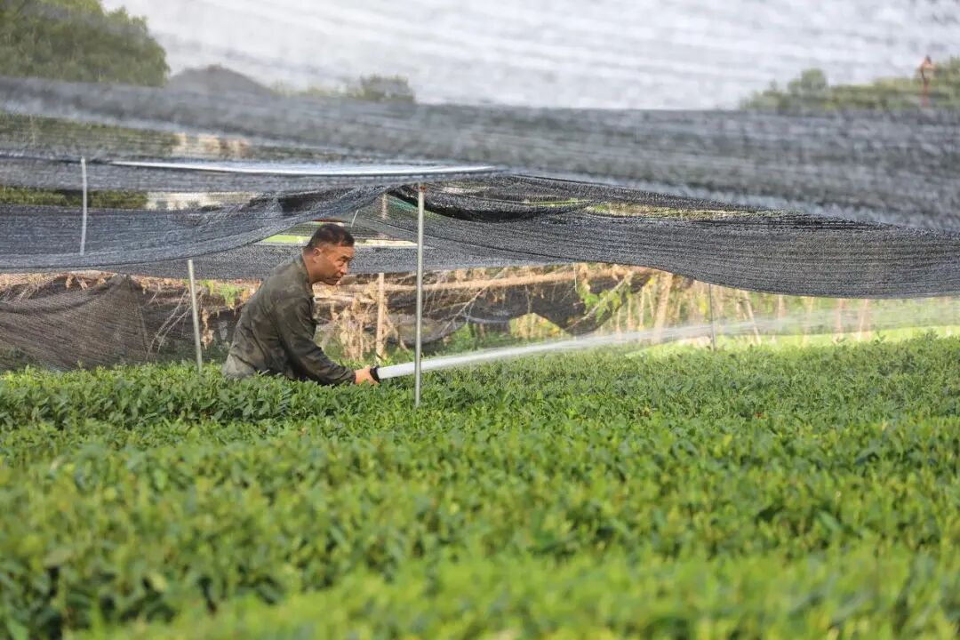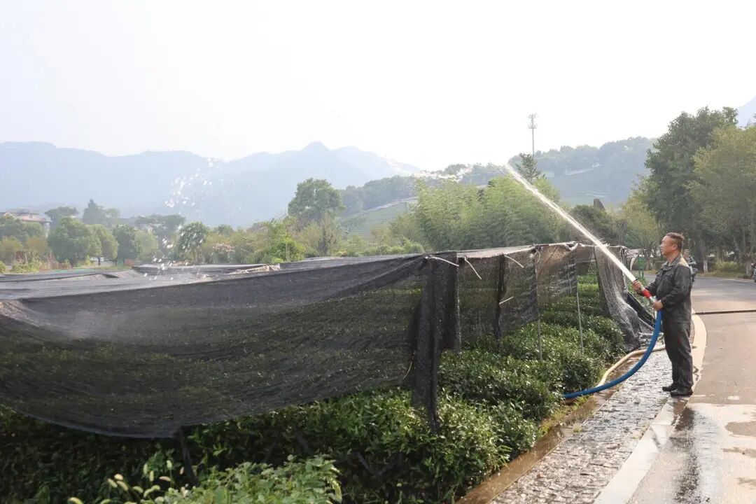 “每年一到高温季,我们就抓紧时间用遮阳网覆盖茶园,减少阳光直射带来的灼伤。而且遮阳网要与茶树留足一定距离,这样既防晒又方便茶园管理。”石国伟说,但茶树也需要光合作用,等之后下雨气温稍降一些,大家就会把遮阳网拿掉。