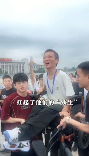 这一幕打动了众多网友,评论区满是赞叹:“那几个抬起他的大男生,太帅了”“抬起来的那刻泪目,感动”“几个年轻帅气的小哥哥好棒,托举起了一个人的梦想”。