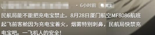8月28日,有网友在社交平台发帖,厦门航空MF8086次航班,飞机起飞前客舱内充电宝着火,烟雾特别刺鼻。