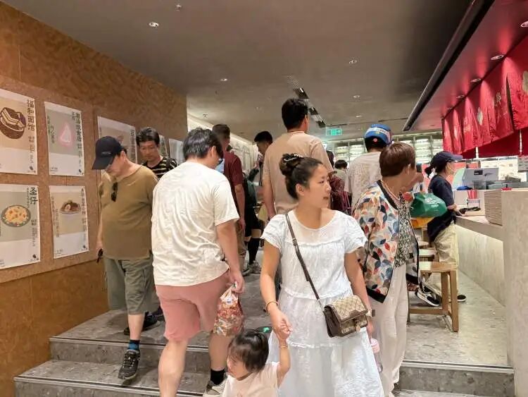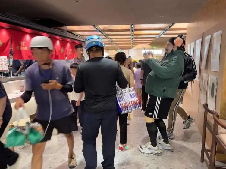 记者观察发现,中午12点左右是城市集市的用餐高峰,不少附近的白领、居民都会过来吃饭。加上地铁口出来的人流和拍照打卡的游客驻足,通道多次出现短时堵塞,但在现场未看到明显的人流引导标识,也无工作人员进行疏导管理。